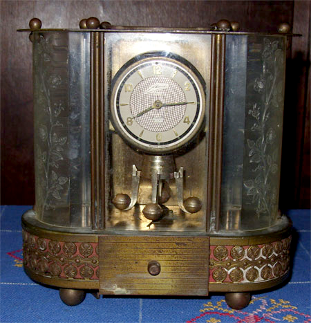 Relógio de mesa Schmid. Imita relógio 400 dias mas não tem pêndulo de torsão.