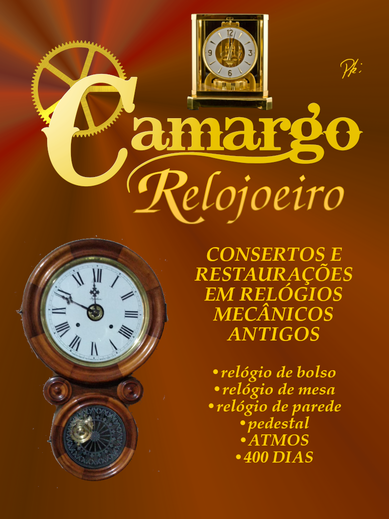 Executo serviços de manutenção, conserto e restauração de relógios mecânicos e eletromecânicos de mesa, de parede ou pedestal. Analiso a possibilidade de atender relógios de bolso, mas no momento não estou trabalhando com relógios de pulso.