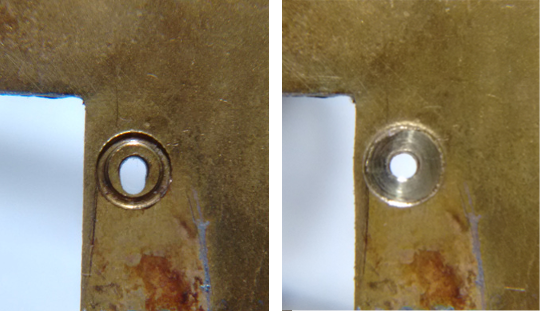 Os furos onde giram os eixos das peças de um relógio devem ser perfeitamente redondos e com superfície interna polida.
